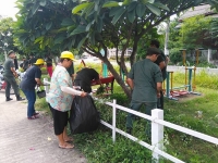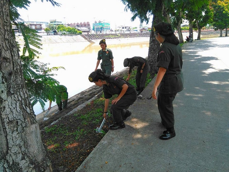 และเก็บขยะบริเวณถนนริมแม่น้ำวังหลังโรงพยาบาลแวนแซนต์วูร์ด เมื่อวันที่ 1