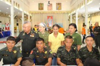 พร้อมด้วย คุณมุกดา ท้วมเสม ประธานชมรมแม่บ้านทหารบก มทบ.32, ข้าราชการ, กำลังพลทหาร ในค่ายสุรศักดิ์มนตรี และ