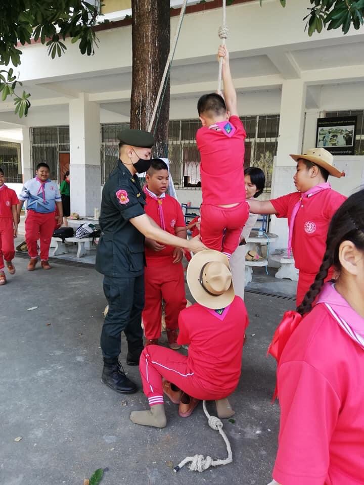 นักศึกษาวิชาทหารช่วยดูแลกิจกรรมเข้าค่ายลูกเสือ-เนตรนารี ระดับชั้น ป.4-6