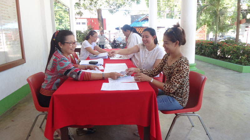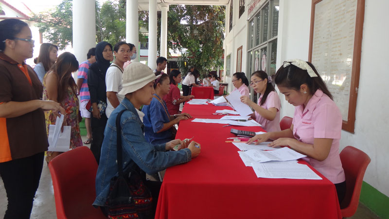 บริเวณหน้าหอประชุม 100 ปีวิชชานารี ซึ่งผู้ปกครองแต่ละระดับชั้นจะได้รับเงินอุดหนุนดังนี้