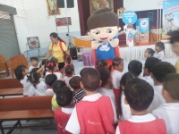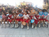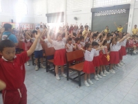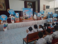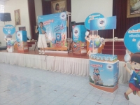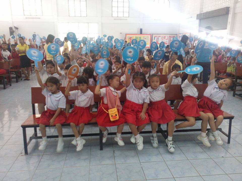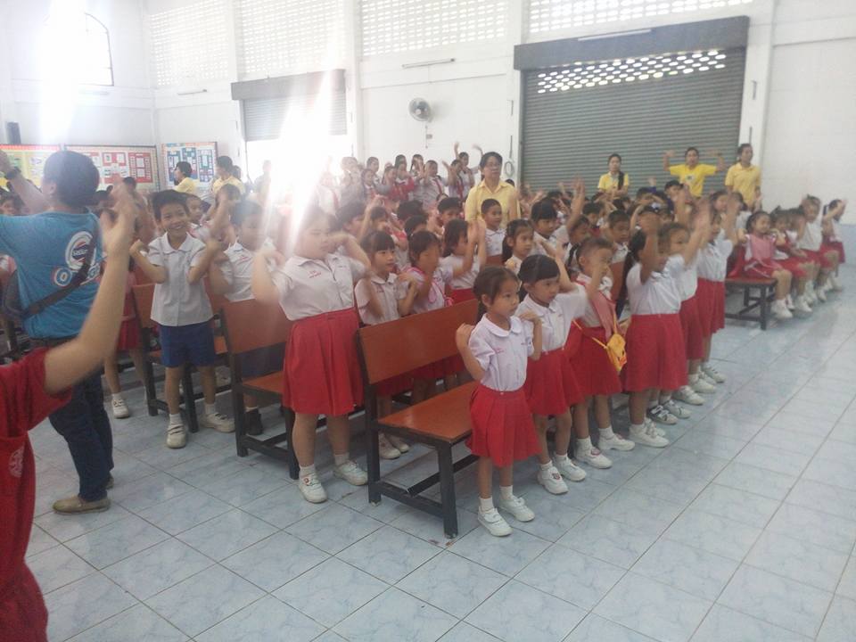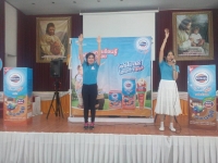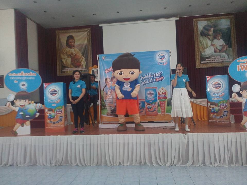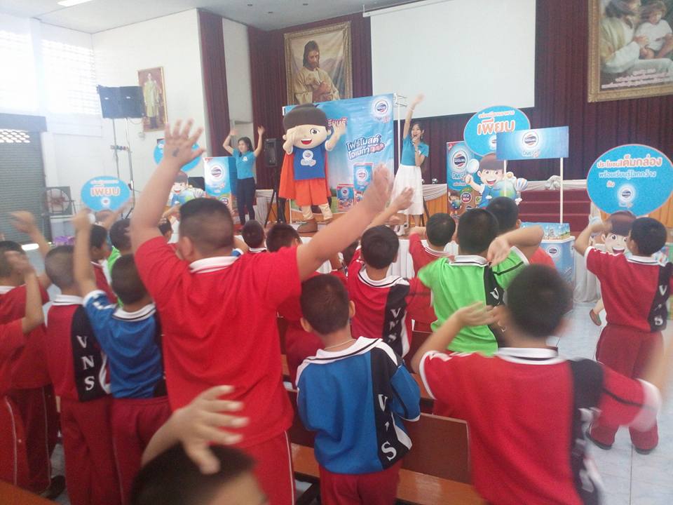 ได้มาจัดกิจกรรมตอบคำถาม เต้นออกกำลังกาย และแจกนมให้กับเด็กๆ ชั้นอนุบาล 1 ถึง ป.6 ณ หอประชุมโรงเรียนวิชชานารี นำโดยผู้ช่วยผู้อำนวยการฝ่ายกิจกรรมนักเรียน อ.พินรัฐ สายสี