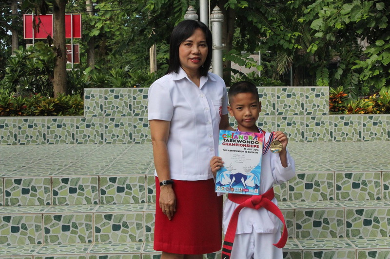 ป.4 ได้รับรางวัลชนะเลิศ รุ่นอายุ 9-10 ปี ชาย ประเภทต่อสู้รุ่น A ระดับมือมือใหม่