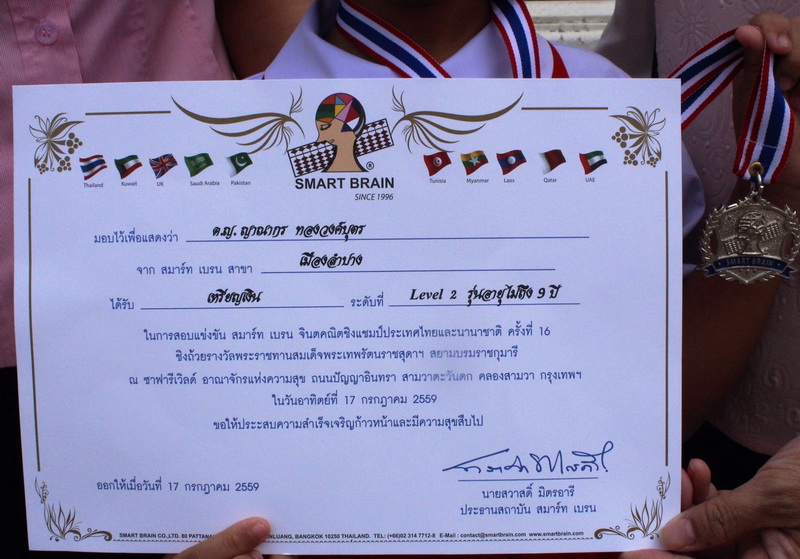 รางวัลเหรียญเงิน การแข่งขัน สมาร์ท เบรน จินตคณิตชิงแชมป์ประเทศไทยและนานาชาติ ครั้งที่ 16