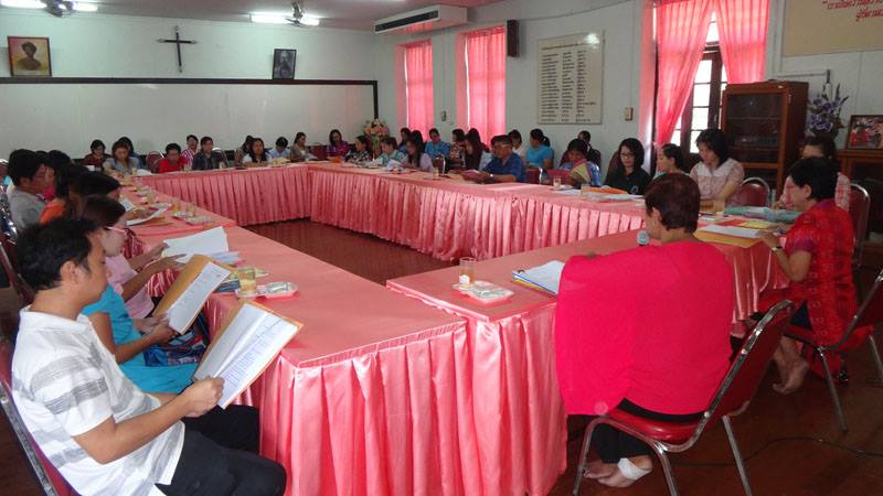 อาคารอำนวยการโรงเรียนวิชชานารี เพื่อรับทราบแผนงบประมาณงานของชมรม ฯ ปีการศึกษา 2557 มีผู้ปกครองและครูเข้าร่วมประชุมทั้งหมด 50