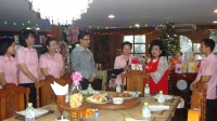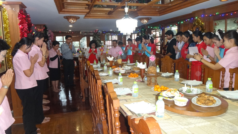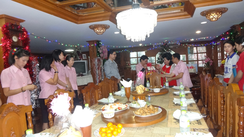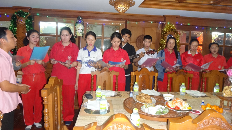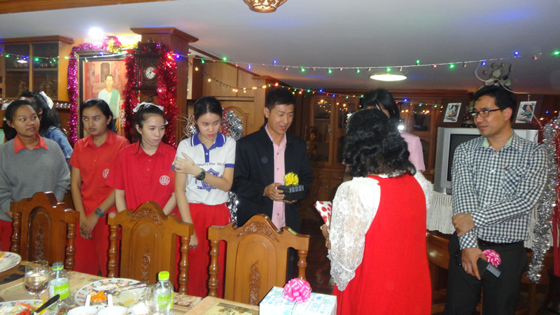 และตัวแทนนักเรียนร่วมร้องเพลงอวยพรคริสตมาสและสวัสดีปีใหม่ ค.ศ. 2015 แด่คุณศรีวรรณ