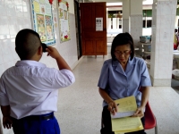 ทดสอบสายตา และทดสอบการได้ยินเบื้องต้น จากเจ้าหน้าที่งานอนามัยโรงเรียน