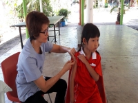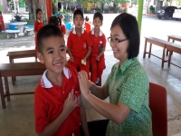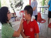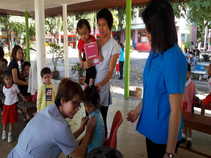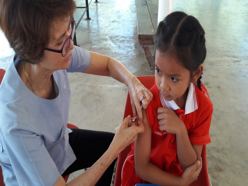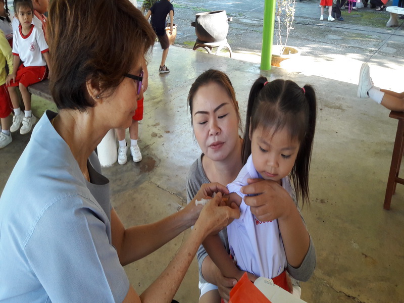 ได้รับวัคซีนรวมป้องกันโรคหัด – หัดเยอรมัน (MR) จากเจ้าหน้าที่กลุ่มงานเวชกรรมสังคม โรงพยาบาลลำปาง ณ ศาลารวมใจ โรงเรียนวิชชานารี