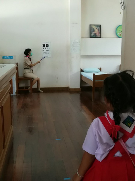 ได้รับการตรวจวัดสายตาเบื้องต้น จากเจ้าหน้าที่งานอนามัยโรงเรียน