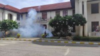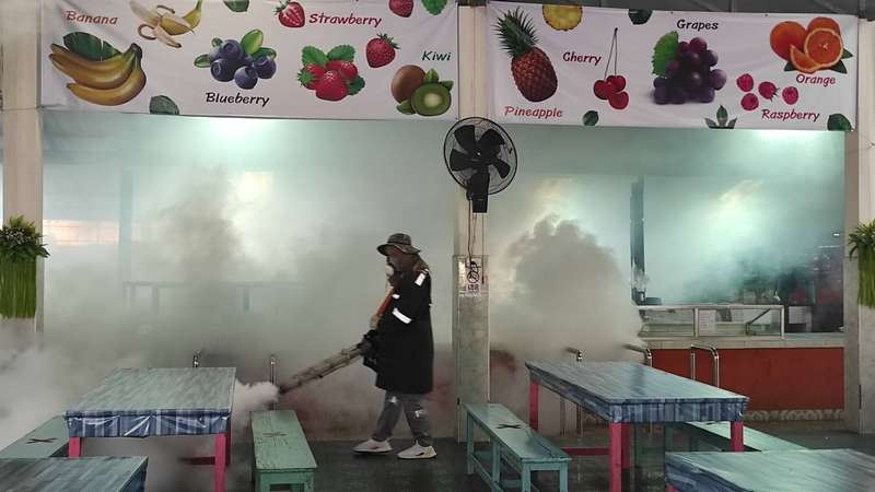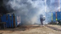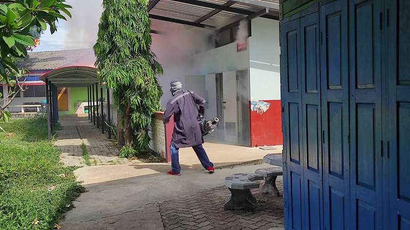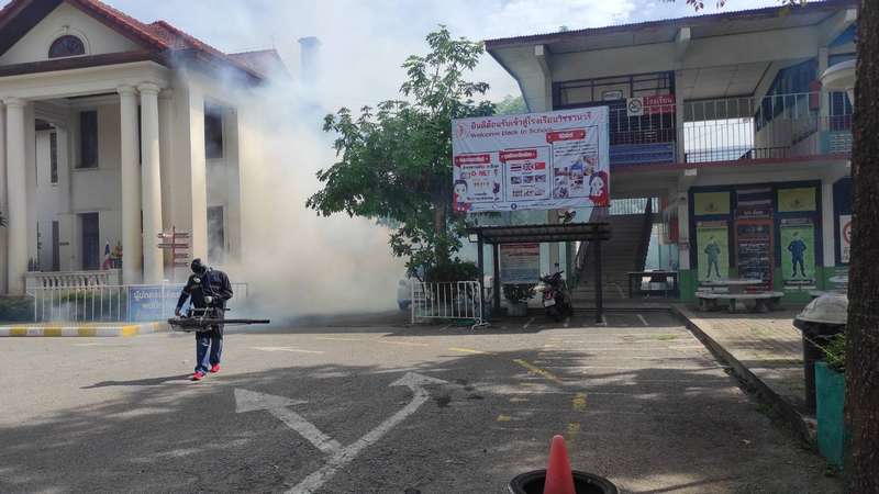 เจ้าหน้าที่จากกองสาธารณสุขและสิ่งแวดล้อม เทศบาลนครลำปาง เข้ามาพ่นสารเคมีกำจัดยุง