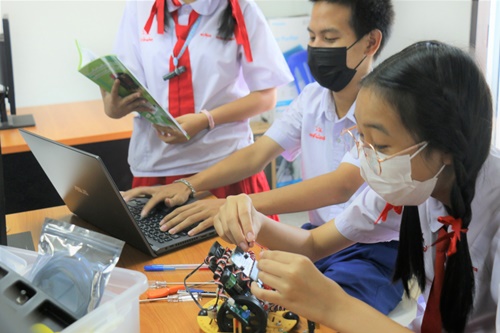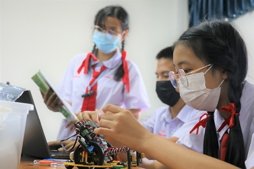 นักเรียนระดับชั้นประถมศึกษาปีที่ 4 -มัธยมศึกษาปีที่ 3 เรียนรู้ Coding Robot เพื่อเสริมสร้างทักษะการคิดเชิงวิเคราะห์ การแก้ปัญหาอย่างเป็นขั้นตอน การคิดสร้างสรรค์ และการจัดลำดับ ผ่านกิจกรรมเรียนรู้ Robot น้อย