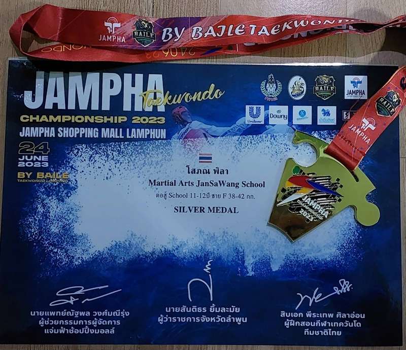 ด.ช.โสภณ พิลา นักเรียนชั้นประถมศึกษาปีที่ 6/2 ได้รับรางวัลรองชนะเลิศอันดับ 1 เหรียญเงิน ในการแข่งขันเทควันโด รุ่นอายุ 11-12 ปีชาย น้ำหนัก 38-42 กก. ในรายการการแข่งขัน Jampha Taekwondo Championship 2023 Jampha Shopping Mall Lamphun เมื่อวันที่ 24 มิถุนายน 2566