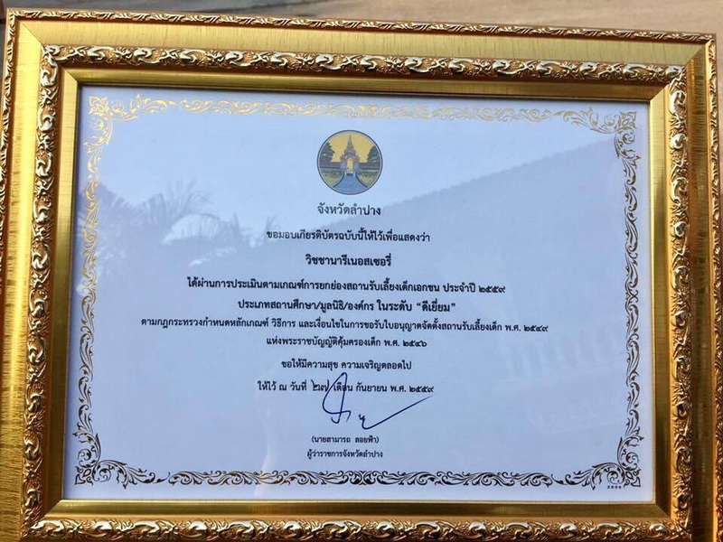 โดยได้รับเกียรติบัตรจากนายสามารถ ลอยฟ้า ผู้ว่าราชการจังหวัดลำปาง ให้ ไว้ ณ
