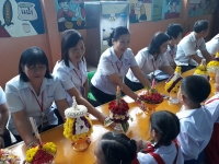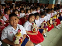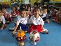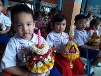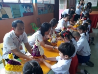 และความสำคัญของวันไหว้ครู เด็กๆได้นำพานดอกไม้ ธูปเทียน และกรวยดอกไม้มากราบครู