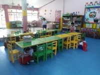 บริเวณสนามหญ้าหน้าอาคารเรียน และห้องเรียนระดับปฐมวัย เมื่อวันที่ 25 กรกฎาคม 2560