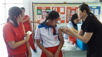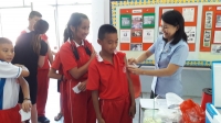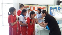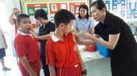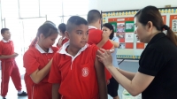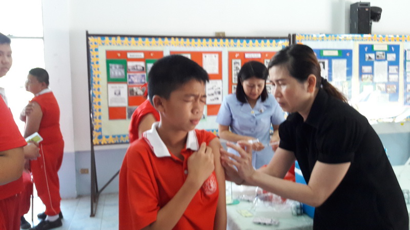 วันที่ 31 กรกฏาคม 2560 นักเรียนชั้นประถมศึกษาปีที่ 6 ได้รับวัคซีนรวมป้องกันโรคคอตีบ บาดทะยัก(dT)กระตุ้น 1 เข็ม จากเจ้าหน้าที่กลุ่มงานเวชกรรมสังคม