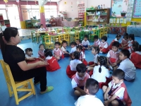 | ครูระดับปฐมวัยได้นำนักเรียนตั้งแต่ระดับชั้นเนอสเซอรี่ – ชั้นอนุบาล 3 เข้าร่วมกิจกรรมบ้านนักวิทยาศาสตร์น้อย ประจำปีการศึกษา2560 ในหัวข้อ “ บ้านแห่งอนาคต ” ในโครงการบ้านนักวิทยาศาสตร์น้อยแห่งประเทศไทย โดยมีนักเรียนระดับชั้นมัธยมศึกษาตอนปลาย จัดกิจกรรมฐานการเรียนรู้และการทดลองทั้งหมด 7 ฐาน บริเวณหน้าอาคารเรียนระดับปฐมวัย เมื่อวันที่ 8 กันยายน 2560 ( อ.จินตภาส์ อ. อำพร ภาพ/ข่าว ) |