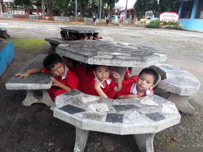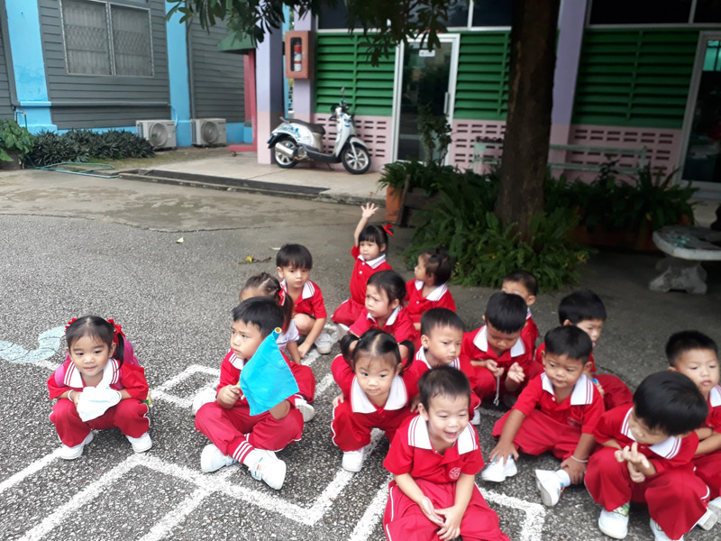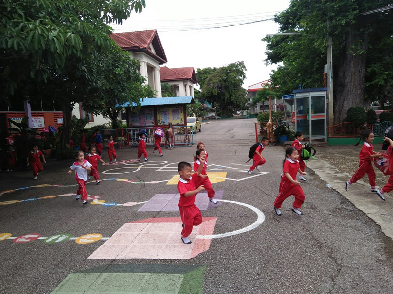 บริเวณสนามหญ้าหน้าอาคารเรียน และห้องเรียนระดับปฐมวัย เมื่อวันที่ 26 กรกฎาคม 2560