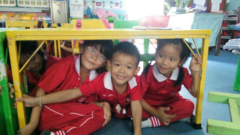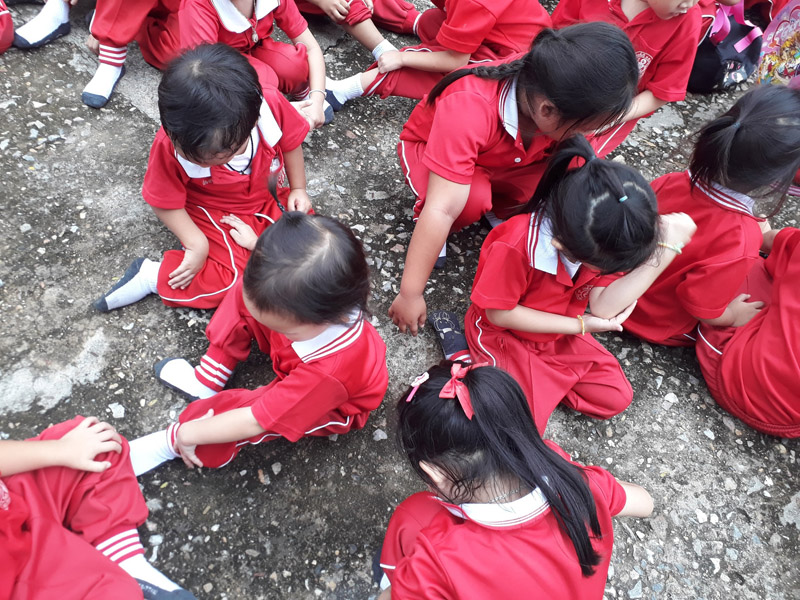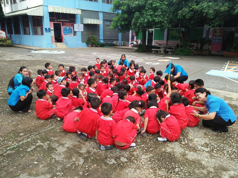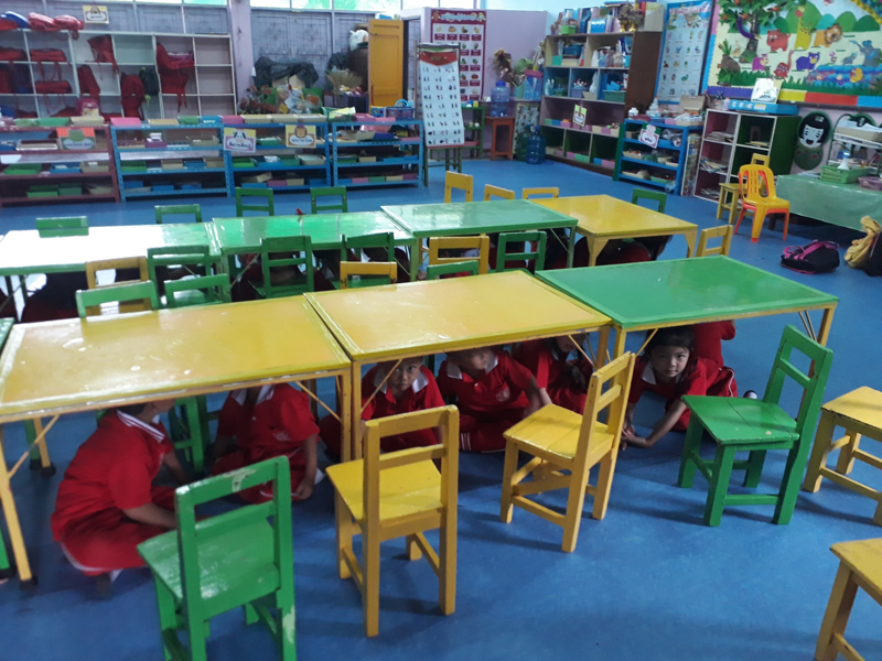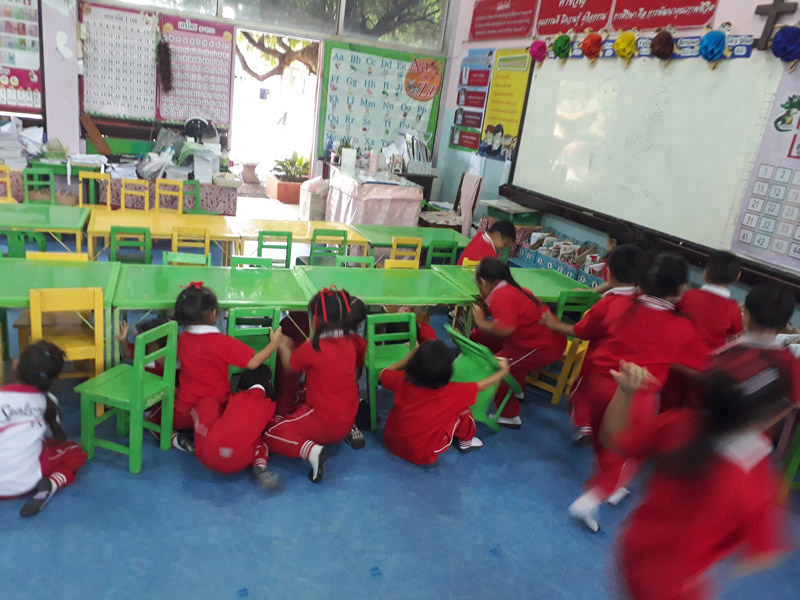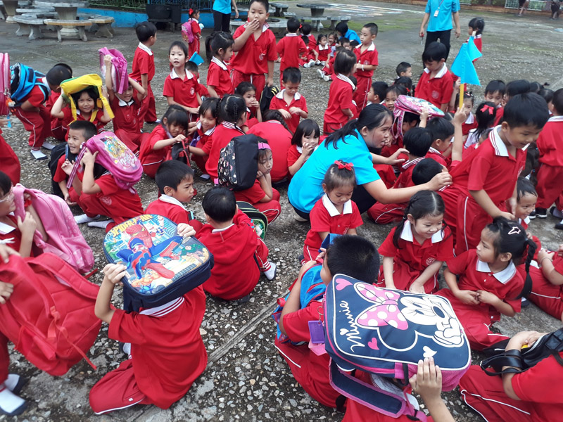 คณะครูระดับปฐมวัยนำนักเรียนตั้งแต่ระดับชั้นเนอสเซอรี่-ชั้นอนุบาล 3 เข้าร่วมฝึกซ้อมอพยพสถานการณ์แผ่นดินไหว