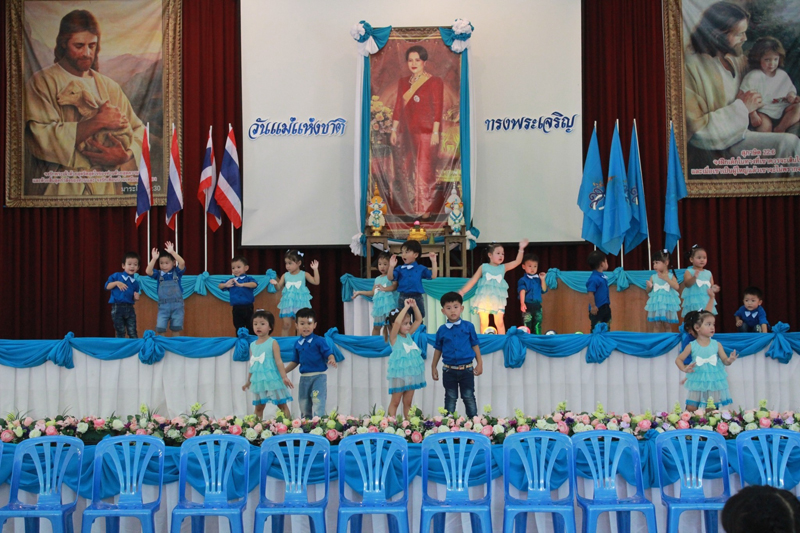 ครูระดับปฐมวัยได้นำนักเรียนตั้งแต่ชั้นเนอสเซอรี่-อนุบาล 3 เข้าร่วมกิจกรรมวันเเม่แห่งชาติ