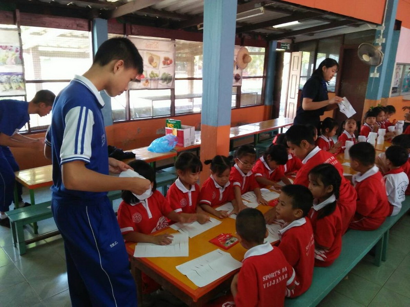 น้ำ จากชมรมผู้ปกครองและครูโรงเรียนวิชชานารี ได้มาแจกให้กับนักเรียน ณ
