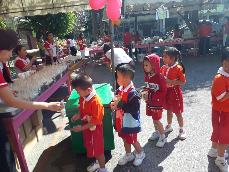 รวมทั้งแจกขนมให้กับนักเรียนทุกคน นักเรียนระดับปฐมวัยทุกคนได้รับประทานอาหาร ขนม