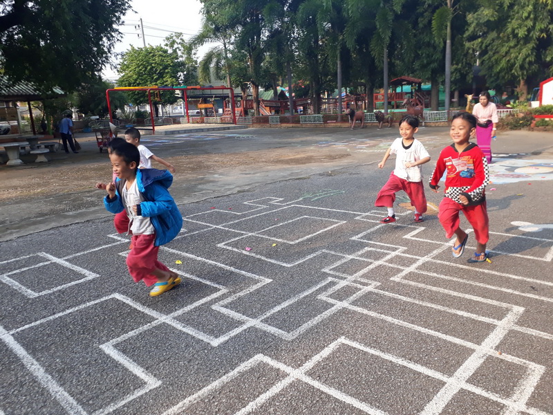และสนามหน้าอาคารเรียนระดับปฐมวัย เมื่อวันที่ 9 มกราคม 2562