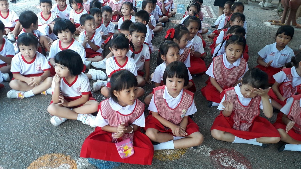 - ชั้นอนุบาล 3 โดยมีการจัดกิจกรรมการเต้นประกอบเพลงให้นักเรียนได้ออกกำลังกายและแจกนมโฟร์โมสต์ให้นักเรียนทุกคน