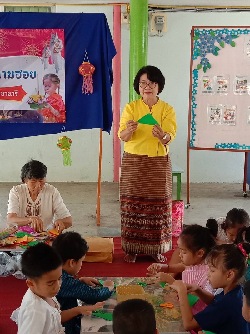 มีกิจกรรมให้เด็กๆเข้าร่วมการประดิษฐ์กระทงจากวัสดุธรรมชาติและกิจกรรมทำตุงหมู