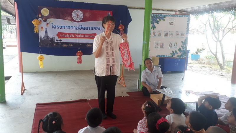 โดยมีป้าพร มาเป็นวิทยากรในการให้ความรู้และสอนเด็กทำตุงหมูในครั้งนี้ ณ