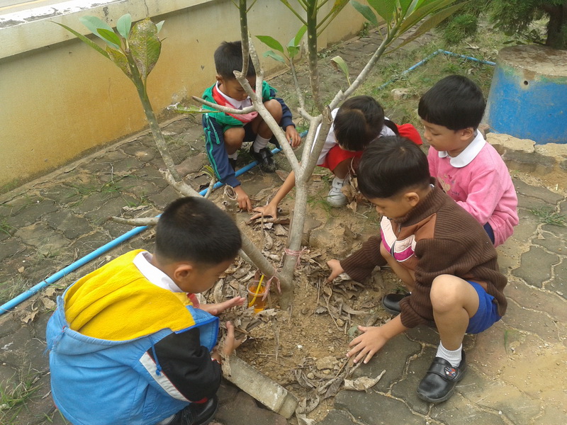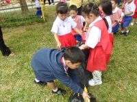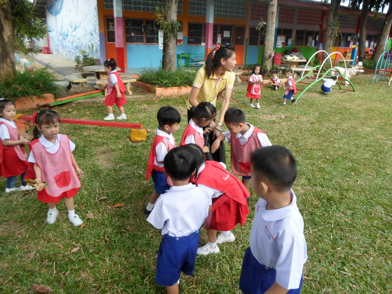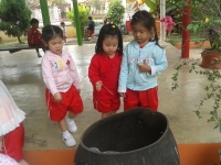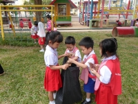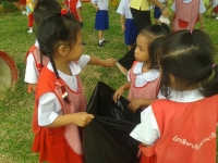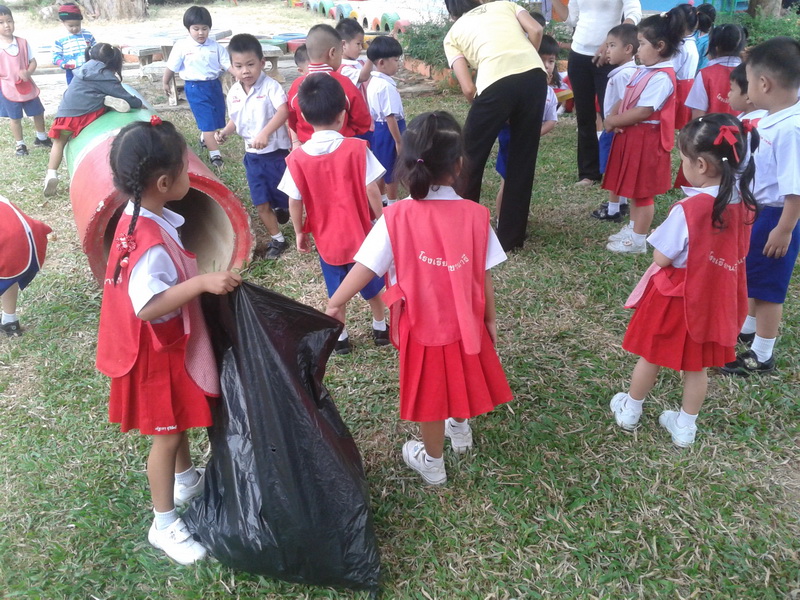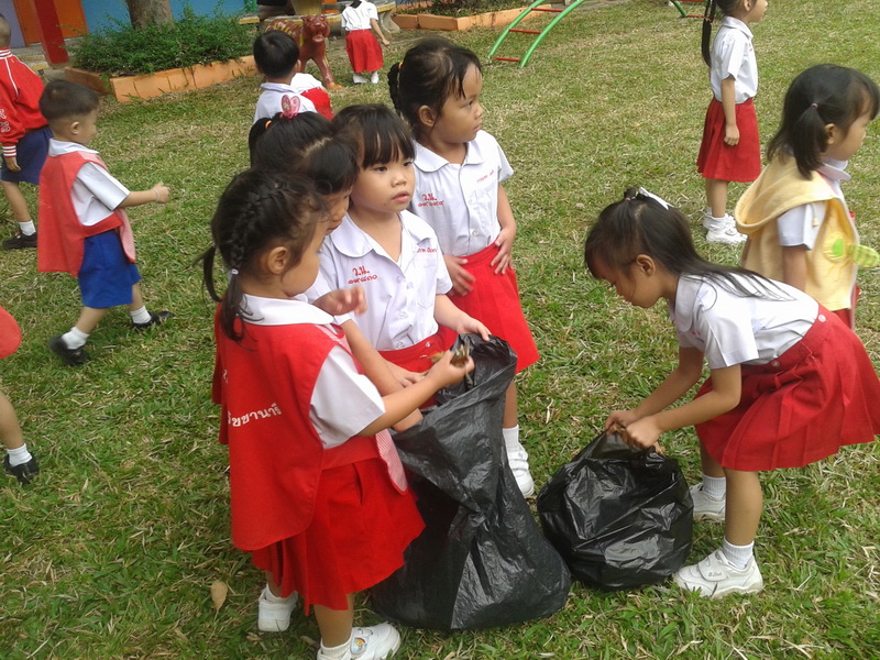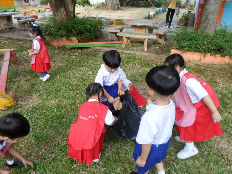 บริเวณอาคารเรียนระดับปฐมวัย เพื่อส่งเสริมให้นักเรียนรู้จักการทิ้งขยะให้ถูกที่ และการช่วยกันรักษาความสะอาด |