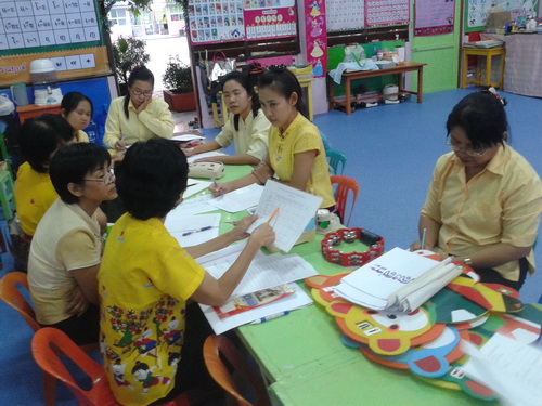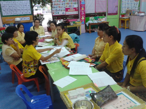 เพื่อปรึกษาวางแผนการดำเนินงานของระดับปฐมวัย ตามแผนปฏิบัติการ ประจำปี 2557 ณ ห้องอนุบาล