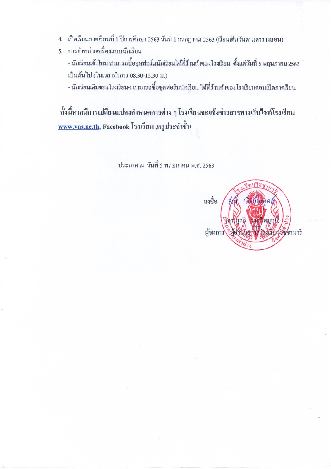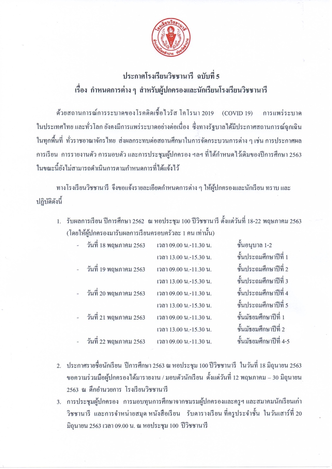 ประกาศโรงเรียนวิชชานารี ฉบับที่ 5