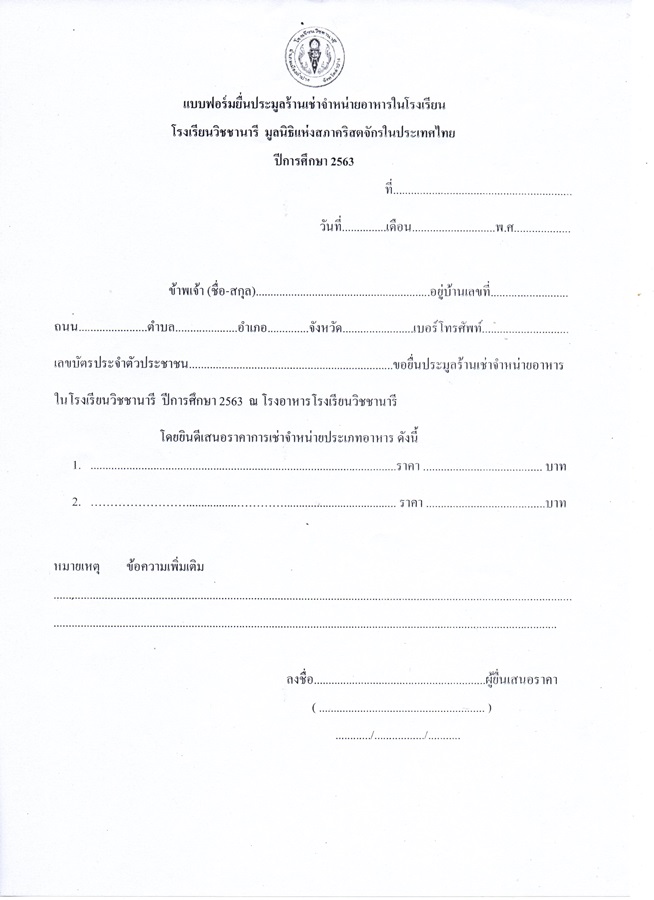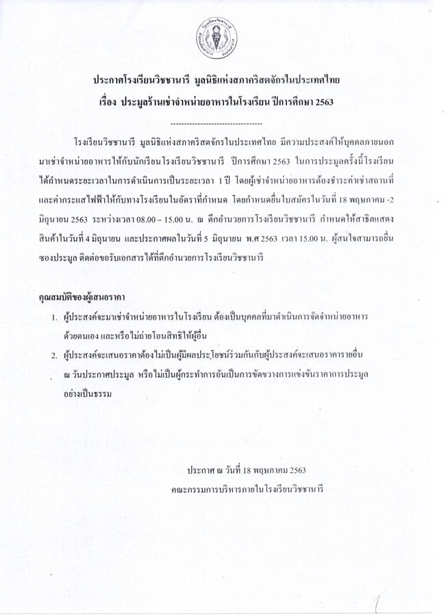 รับสมัคร ประมูลร้านเช่าจำหน่ายอาหารในโรงเรียน เวลา 07.00-13.00 น.