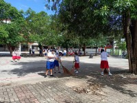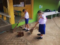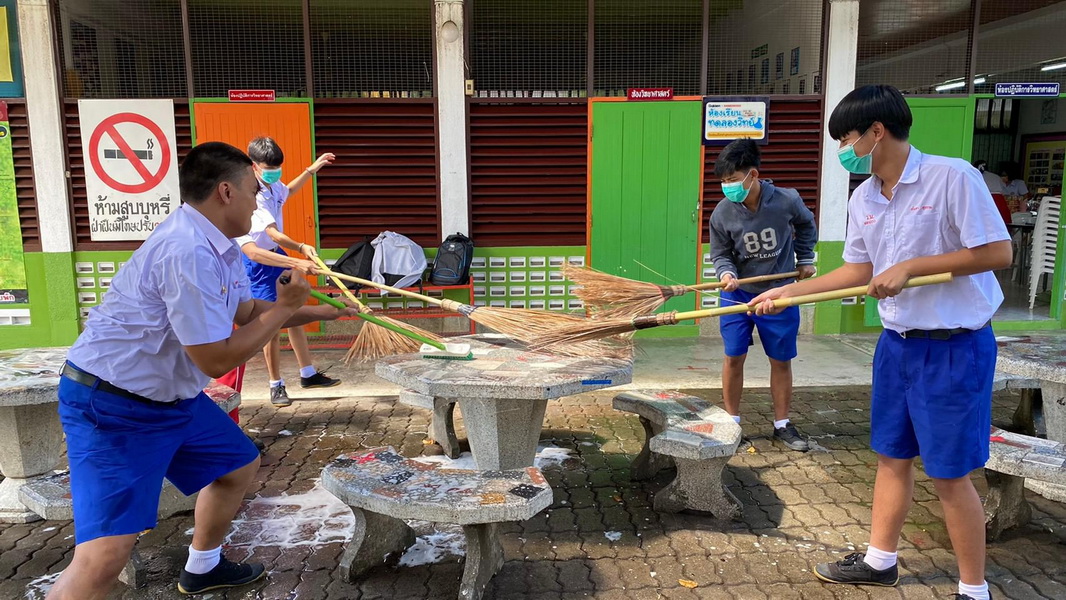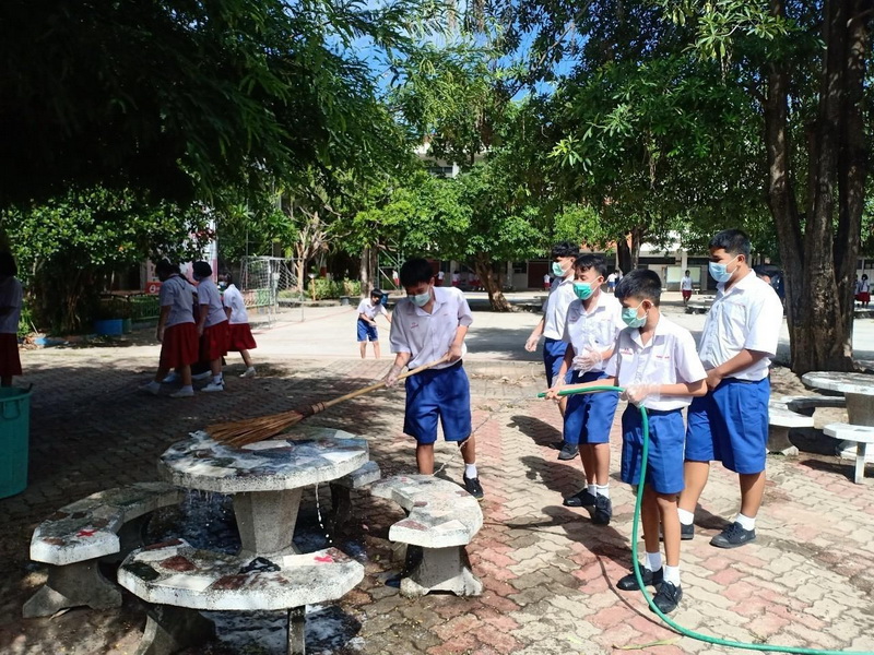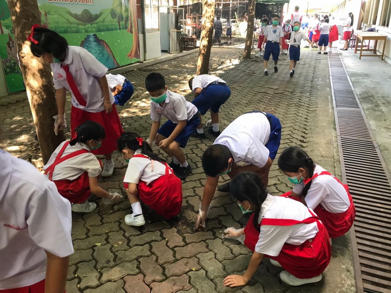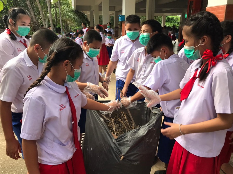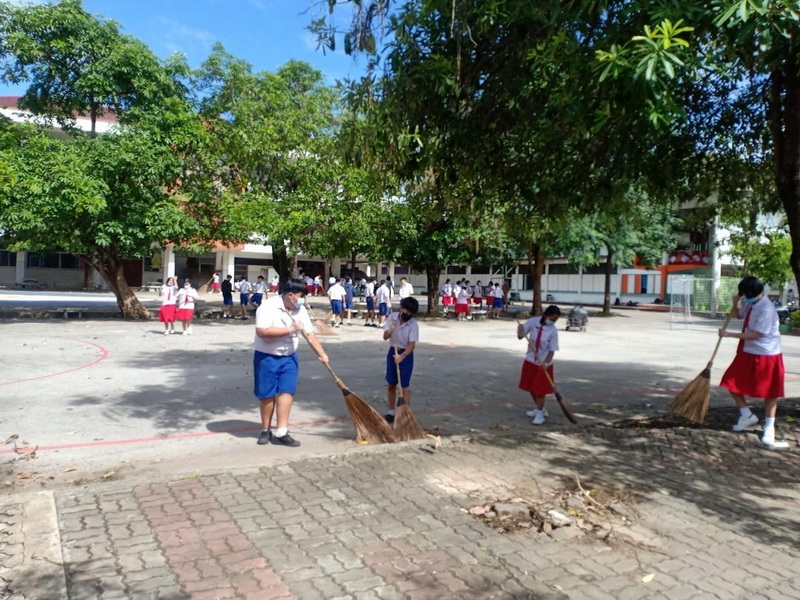 โดยมีนักเรียนระดับชั้นอนุบาลถึงชั้นมัธยมศึกษาปีที่ 6 เข้าร่วมกิจกรรมทำความสะอาด เก็บขยะ กวาดพื้น