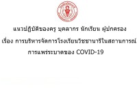 แนวปฏิบัติของครู บุคลากร นักเรียน ผู้ปกครอง เรื่องการบริหารจัดการโรงเรียนวิชชานารีในสถานการณ์การแพร่ระบาดของ COVID-19