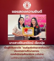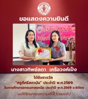 Ms. Wiyada Laowon, on receiving the "Outstanding Teacher of the Institution" award for the year 2026, presented at the Northern Private Education Day 2026 in Phichit Province.