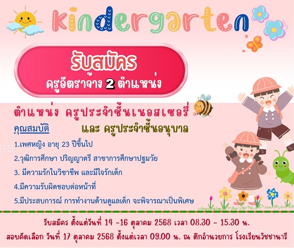 ระกาศรับสมัครครูผู้สอน ระดับปฐมวัย ภาคเรียนที่ 2 ปีการศึกษา 2568