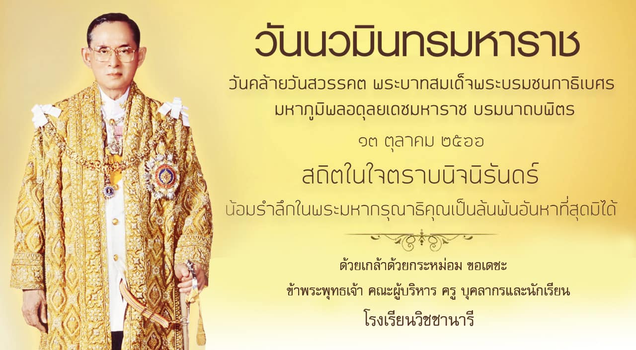 เนื่องในวันคล้ายวันสวรรคตพระบาทสมเด็จพระบรมชนกาธิเบศร มหาภูมิพลอดุลยเดชมหาราช บรมนาถบพิตรว่า "วันนวมินทรมหาราช" วันที่ 13 ตุลาคมของทุกปี