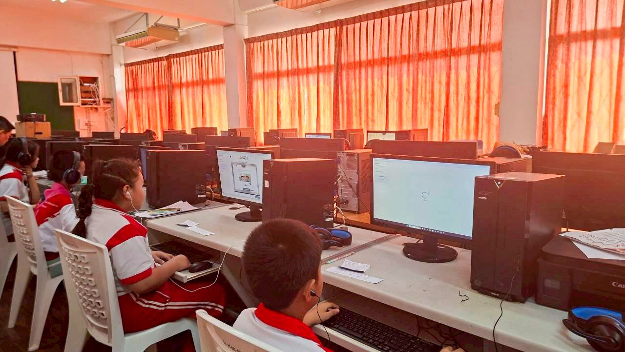 บรรยากาศการสอบวัดระดับภาษาอังกฤษตามกรอบมาตรฐานยุโรป (CEFR) ของนักเรียนระดับชั้น ป.1 - ม.3 ประจำปีการศึกษา 2568